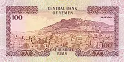 YRls 100 | Purple | Cisterns of Tawila, Aden | City view of Sana'a with mosque minaret and mountains | ||
