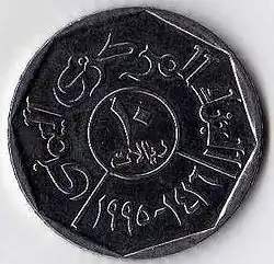 Before unification, North Yemen issued coins in denominations of 1, 5, 10, 25 and 50 fils, and 1 rial. The fils denominations have all disappeared from circulation. In 1993, new coins were introduced by the Central Bank of Yemen in denominations of 1 and 5 rials. These were followed by 10-rial coins in 1995 and 20-rial coins in 2004.