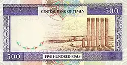 YRIs 500 | Purple | Central Bank building, Sana'a | Throne of Queen Bilqis in Ma'rib | 1997 | |