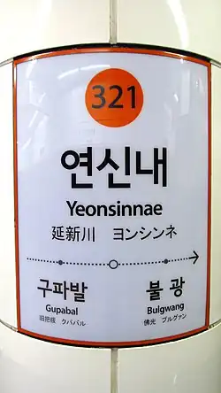 | Revised Romanization | Yeonsinnae-yeok | ||||||||||||||||||||