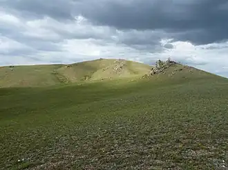 Yereymentau city lies at the northern end of the range and the village of Beloyarka at the southern.[2] The Buiratau National Park is located in the Yereymentau Mountains, which are also part of a 364,580 hectares (900,900 acres) Important Bird Area.[3]