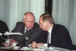 ![]() Yevgeny Adamov (left) with President of Russia Vladimir Putin in Chelyabinsk Oblast on 31 March 2000. | |