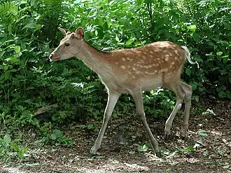 The Yezo sika deer (Cervus nippon yesoensis,[1][2] Japanese: エゾシカ / 蝦夷鹿, romanized: yezoshika,[3] Ainu: ユク yuk[4][5]) is a subspecies of sika deer that inhabits the northern Japanese island of Hokkaido. The Hokkaido sika are endemic, although it is not known whether they originated there or migrated from Honshū or areas further south. It is thought that they may have traveled across the Tsugaru Strait between the islands. Genetic study has shown that the separation of the sika population occurred less than half a million years ago.[6] It is possible that northern sika deer may be more closely related to yezo sika deer than to other sika deer.[7] The indigenous Ainu people of Hokkaido have hunted them for centuries and relied on them as a major food source.