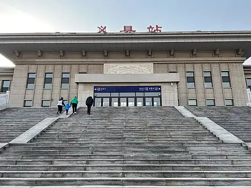 Yixian railway station (Chinese: 义县) is a third-class railway station in Yizhou town, Yi County, Jinzhou, Liaoning. It is located on the Xinlitun–Yixian railway and Jinzhou–Chengde railway. It was built in 1921 and is under the jurisdiction of China Railway Shenyang Group.[1]