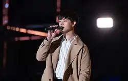 Yook achieved his breakthrough when he landed a leading role in the teen drama Who Are You: School 2015, alongside Kim So-hyun and Nam Joo-hyuk.[32][33][34] He participated in the drama's OST with "Love Song", a duet with Park Hye-soo.[35] After the series ended, he experienced a rise in popularity and landed several endorsement deals.[36] Yook then starred in the horror mystery series The Village: Achiara's Secret alongside Moon Geun-young in 2015.[37] He received the "New Star award" for his performance in The Village: Achiara's Secret,[38] and won "Best Couple award" with Kim So-hyun for Who Are You: School 2015.[39]