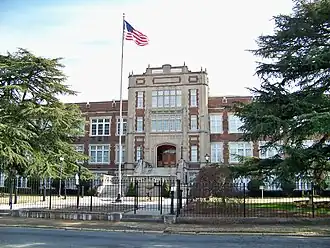 York-Chester Historic District is a national historic district located at Gastonia, Gaston County, North Carolina, United States. It encompasses 649 contributing buildings, 2 contributing sites, and 1 contributing structure in a predominantly residential section of Gastonia. The dwellings were built between about 1856 and 1955, and include notable examples of Queen Anne and Bungalow / American Craftsman architecture. Located in the district are the separately listed former Gastonia High School. Other notable contributing resources include the Beal-Ragan Garden, Oakwood Cemetery, Caroline Hanna House (c. 1882), Spurrier Apartment building (c. 1929), Edgewood Apartments (c. 1937), the Joseph W. Lineberger House (c. 1947) and Devant J. and June S. Purvis House (1951).[2]
