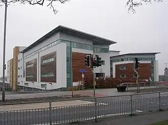 The college was established in its present form in 1999 by a merger of York Sixth Form College and York College of Further and Higher Education,[5] which had been known as York College of Arts and Technology.[6] A £60 million redevelopment of the former sixth form college site began in 2005, and the present campus opened in September 2007.[7] During the development, concerns were raised about the impact on traffic.[8] The site would cater for 13,000 students based across North Yorkshire and the East Riding of Yorkshire. The Learning and Skills Council contributed £21 million funding to the project, with the rest of the costs being met through the sale of the former site on Tadcaster Road.[9] The buildings had replaced what was formerly the Ashfield Secondary Modern School, before the sixth form opened on the site in 1985.[10] During the redevelopment all the students were based on the further and higher education site at Tadcaster Road, which was afterwards demolished to make way for housing.[7][11]