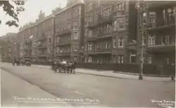 York Mansions in the early 1900s with cast-iron fence and parapet