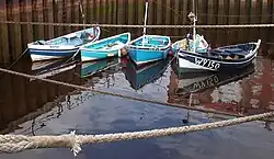 The coble (pronounced cobble) has been on the eastern coast of Britain for a 1,000 years[14] and has a ribbed look (known as clinker built) where the planks, made from larch wood, overlap each other.[15][16] The coble fell out of favour after the First World War as they were sail boats, and motorised fishing vessels took their place,[17] although some cobles have had engines fitted.[18] There are now several preservation movements dedicated to the history of the coble.[19][20]