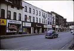 Yorkville's domination by hippies and young people led MPP Syl Apps to refer to it as "a festering sore in the middle of the city" and call for its "eradication."[6] Joni Mitchell captured a colorful impression of the nightlife scene on Yorkville Avenue in her song "Night in the City."[7] The hippie scene was also depicted in the National Film Board of Canada documentary Christopher's Movie Matinée in 1968.[8]
