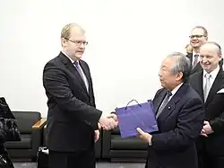 5. ^ "自民参院議員会長に溝手氏" [Mizote elected LDP Councillors' leader]. Nikkei (in Japanese). 30 July 2013. Retrieved 9 February 2016.