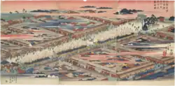 Yoshiwara (吉原) was a famous yūkaku (red-light district) in Edo, present-day Tokyo, Japan. Established in 1617, Yoshiwara was one of three licensed and well-known red-light districts created during the early 17th century by the Tokugawa shogunate, alongside Shimabara in Kyoto in 1640[1] and Shinmachi in Osaka.[1]