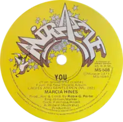 "You" is a 1977 single by Australian recording artist Marcia Hines, first recorded by writer Tom Snow on his 1975 Taking It All in Stride LP. "You" was the second single from her third studio album, Ladies and Gentlemen, released in October 1977. It peaked at No. 2 in Australia, and remains Hines' highest-charting single in Australia.[2]