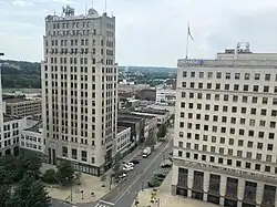 Downtown Youngstown has seen modest levels of new construction. In the 2000s, additions included the Nathaniel R. Jones Federal Building and U.S. Courthouse in 2002, named for Youngstown native Nathaniel R. Jones and designed by Robert A. M. Stern Architects,[51] the Mahoning County Children's Services Center and George Voinovich Government Center in 2004, and both the Covelli Centre and Ohio Seventh District Court of Appeals in 2006. The Covelli Centre was funded primarily through a $26 million federal grant secured in 2000 by then-Congressman James Traficant and is located on the site of a former steel mill downtown.[52] The arena's main tenants are the Youngstown Phantoms junior hockey team.