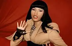 The video is set to tell the story of a samurai-in-training, who falls in love with her master while a jealous peer fights for his affection.[36] The video begins with Minaj delivering her lines over a red flowing fabric backdrop wearing a brown coat and a geisha costume with a blue flowing fabric backdrop, while White teaches a martial arts class.[33] As Minaj and the instructor (White) begin to fall for one another, a student, who also has feelings for the instructor sees this and is jealous.[33] This is intercut with scenes with Minaj donning a blonde wig and black bodysuit and in front of a green flowing backdrop.[33] After seeing Minaj and White embrace each other on a bridge over blue-fabric "water", Minaj and her peer rival have a confrontation, which results in a duel. According to MTV News, the scenes pay homage to Uma Thurman as The Bride and Lucy Liu as Cottonmouth in Kill Bill.[33] Minaj loses and her rival walks away as Minaj bleeds a red fabric and White walks up and grieves over her body.[33]