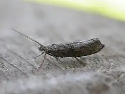 The wingspan is 16–21 mm. Adults are on wing from July to August.[2]