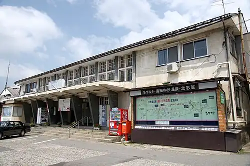In 1958, the current station building was completed. In 1971, freight operations ended. JNR operated the Shiga train between Yudanaka and Ueno Station in Tokyo using the Shinetsu Line. This service to Yudanaka was discontinued in 1982.