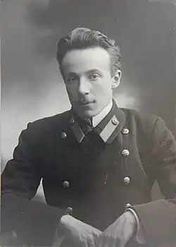 In 1910, Yuri graduated with a gold medal from the Third Kharkiv Gymnasium. Another gold medallist from the gymnasium that year was Valery Mezhlauk.[2] Yuri Gabel continued his studies in the Chemistry Department of the Faculty of Physics and Mathematics at Imperial Kharkiv University, graduating in 1914 with a first-class degree. He began working in the chemical laboratory of the Southern Railways. In 1915, he defended his thesis on "The Effect of Light on the Electrical Conductivity of Iodine Mercury in Acetone" and was awarded the degree of Master of Science.[3] In the fall of the same year, he was retained for two years without a scholarship in the Department of Organic Chemistry at the university to prepare for a professorship.[4][5] At the same time, he was involved in public activities and in 1918 was elected as a candidate for the board of the Kharkiv Public Library.[1]