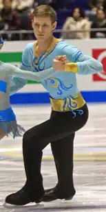 Yuri Mikhailovich Shevchuk (Russian: Юрий Михайлович Шевчук; born 27 August 1990) is a Russian pair skater. With former partner Alexandra Vasilieva, he is the 2011 Russian Junior silver medalist and placed 11th at the 2011 World Junior Championships. The pair began skating together in May 2008 and were coached by Artur Dmitriev in Saint Petersburg.[1] In March 2012, it was confirmed that Vasilieva/Shevchuk had ended their partnership and he had teamed up with Natalia Mitina.[2] Mitina/Shevchuk are coached by Dmitriev and Natalia Pavlova in Moscow.[2] They placed fourth at the 2013 Winter Universiade.