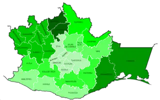 Yutanduchi de Guerrero is part of the Nochixtlán, which is further subdivided into 32 municipalities. The district is in the southeastern part of the Mixteca Region, in the northwestern part of the state of Oaxaca. As of 2005 INEGI census, the municipality had 1175 inhabitants: 552 men and 623 women. The municipality has an area of 223.27 square kilometers. The average elevation is 1620 meters above sea level.