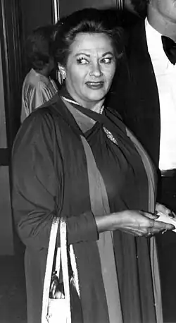 She prepared extensively for the role, taking weaving lessons at the University of California, Los Angeles, and shepherding lessons in the San Fernando Valley.[107] Months before filming began, she had worked on the part with a drama coach.[108] Her scenes were shot on Paramount's sound stages in 1955. Her performance received praise from critics. Crowther, the New York Times critic, was impressed: "Yvonne De Carlo as the Midianite shepherdess to whom Moses is wed is notably good in a severe role."[109] The Hollywood Reporter wrote that she "is very fine as the simple Sephora,"[110] and the New York Daily News noticed that she "plays the wife of Moses with conviction."[111] De Carlo was expected to receive an Academy Award nomination for Best Supporting Actress, but she preferred to be listed as a leading actress on the voting ballot and was not nominated in that category.[112] However, she won a Laurel Award for Topliner Supporting Actress for her performance in the film.[6]
