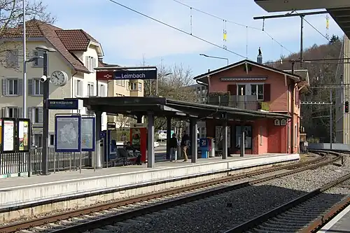Zürich Leimbach (German: Zürich Leimbach) is a railway station in the south-west of the Swiss city of Zurich, in the Leimbach quarter. It is located within fare zone 110 of the Zürcher Verkehrsverbund (ZVV).[2] The station is on the Sihltal line, which is owned and operated by the Sihltal Zürich Uetliberg Bahn (SZU).[3][4][5]