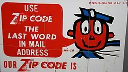 1. ^ Curtin, Abby. "Flashing Across the Country: Mr. Zip and the ZIP Code Promotional Campaign". Smithsonian National Postal Museum. Archived from the original on May 30, 2023. Retrieved May 30, 2023.