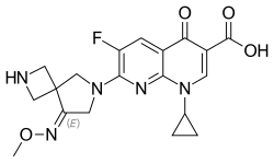 1-Cyclopropyl-6-fluoro-7-[(8E)-8-(methoxyimino)-2,6-diazaspiro[3.4]octan-6-yl]-4-oxo-1,4-dihydro-1,8-naphthyridine-3-carboxylic acid | |