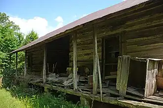 The Zachariah Ford House is a historic house in rural eastern Stone County, Arkansas. It is located northeast of Pleasant Grove, off County Road 46, on the bluffs overlooking the flood plain of the White River. It is a single-story dogtrot log structure, finished with weatherboard siding and a gable roof that extends over its front porch. It rests on stone piers, and is oriented on a north–south axis. The older of the building's two pens was built about 1856 by Zachariah Ford, and the second pen, breezeway, and roof were built by his son George. The building provides an excellent window into the early evolution of this housing form.[2]