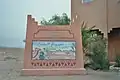 A sign at the town border states "Tombouctou 52 days", the supposed time it takes to get to Timbuktu, Mali on foot or camel. The original sign has been replaced by a mural painting.[2]