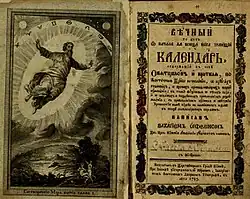 The illustration Creation of the World and the title page of the book Вѣчный калєндарь (Eternal Calendar) by Orfelin, 1783.