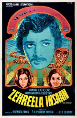 Zehreela Insaan (transl. Poisonous human) is a 1974 Indian Hindi-language romance film directed by Puttanna Kanagal and produced by Virendra Sinha. The film stars Rishi Kapoor, Moushumi Chatterjee, Neetu Singh and Pran. It is a remake of Kanagal's own 1972 Kannada film Naagarahaavu which was based on three Kannada novels: Nagarahavu, Ondu Gandu Eradu Hennu and Sarpa Mathsara, all written by T. R. Subba Rao.