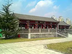 Yanqing House (延庆楼; 延慶樓), as well as several other adjoining buildings, was built during the Beiyang Government around 1922. During his time as de facto ruler of the Beiyang Government, Cao Kun used Yanqing House as his workplace while living in nearby Huairen Hall. His wives and concubines lived in several of the adjoining buildings. After Cao Kun was overthrown in 1924, he was imprisoned in Yanqing House for two years. The original Yanqing House was ultimately destroyed in a fire in 1947.[48] The KMT military commander of Beiping, Fu Zuoyi, subsequently built a series of small bungalows in this location to house military and political personnel.[49] By the early 2000s, a one-story building with two courtyards existed on the former site of Yanqing House. The building was sometimes referred to as Yanqingzhai (延庆斋).