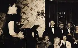 In 1946 Zhou was a featured soloist at the first Prague Spring International Music Festival; a performance which earned her the nickname the "Chinese nightingale".[2] While at the festival she became acquainted with many luminary musicians of the 20th century, including Leonard Bernstein, David Oistrakh, Sviatoslav Richter, and Dmitri Shostakovich.[2] Concerts in other major European cities followed from 1946 to 1947, including performances in London, Paris, and cities in the Czech Republic, Italy, Germany, and Switzerland.[3][2]