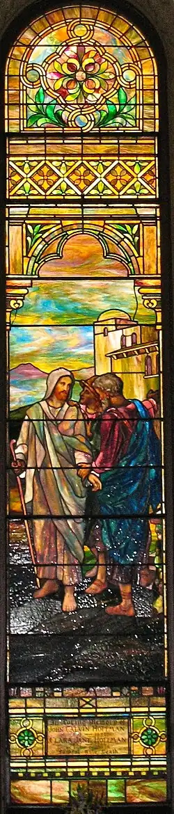 Most striking to those who visit Zion Church are the stained glass windows. The oldest windows are the Roman Window and the Schnebly Window which were installed between 1880 and 1907. When the church was remodeled in 1908, nine more stained glass windows were installed and since that time more have been added for a total of ten in the sanctuary, two in the narthex, two angel windows in the vestibule, two in the foyer, and four more in the chapel. Wikimedia Commons has photographs of all of the church's stained glass windows.