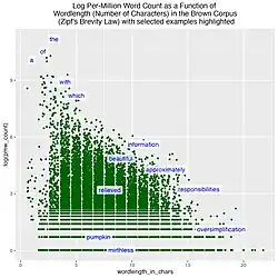 In linguistics, the brevity law (also called Zipf's law of abbreviation) is a linguistic law that qualitatively states that the more frequently a word is used, the shorter that word tends to be, and vice versa; the less frequently a word is used, the longer it tends to be.[1] This is a statistical regularity that can be found in natural languages and other natural systems and that claims to be a general rule.