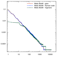 When a text is encrypted in such a way that every occurrence of each distinct plaintext word is always mapped to the same encrypted word (as in the case of simple substitution ciphers, like the Caesar ciphers, or simple codebook ciphers), the frequency-rank distribution is not affected. On the other hand, if separate occurrences of the same word may be mapped to two or more different words (as happens with the Vigenère cipher), the Zipf distribution will typically have a flat part at the high-frequency end.