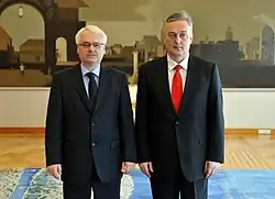 Zlatko Lagumdžija (born 26 December 1955) is a Bosnian diplomat and politician serving as Permanent Representative of Bosnia and Herzegovina to the United Nations since July 2023. He previously served as Minister of Foreign Affairs from 2001 to 2002 and from 2012 to 2015. Lagumdžija was also Chairman of the Council of Ministers of Bosnia and Herzegovina from 2001 to 2002.[1] He was president of the Social Democratic Party (SDP BiH) from 1997 to 2014.