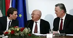 Lagumdžija alongside Austrian and Hungarian Foreign Ministers Sebastian Kurz (left) and János Martonyi, 27 March 2014