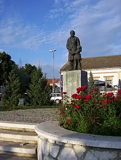 Statue of Jovan Jovanović Zmaj in centre of Sremska Kamenica