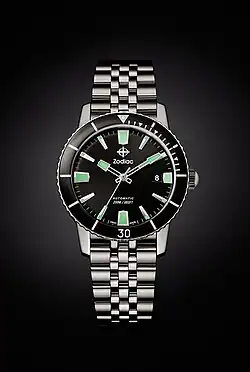 Zodiac Watches, or simply Zodiac, is an American[1] brand of Swiss-made watches founded in 1882 by Ariste Calame in Le Locle, Switzerland. The company mostly focuses on its dive watches through its Sea Wolf line,[2] one of the first modern dive watches, which debuted in 1953, before the Rolex Submariner and after Blancpain Fifty Fathoms.[3] Although Zodiac was acquired by Fossil Group in 2001, its manufacturing remained in Bienne, Switzerland.[2] Zodiac[1] and Fossil Group are headquartered in Richardson, Texas.[4]