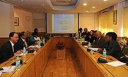 Kota-Mpeko (front right) in a bilateral meeting in New Delhi, 23 January 2012