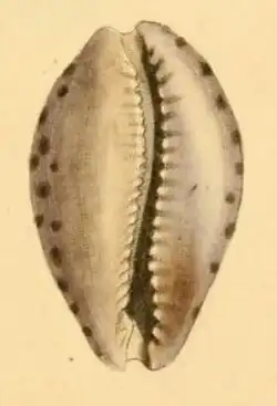 2. ^ Gray, J.E. (1824–1828). Monograph on the Cypraeidae, a family of testaceous Mollusca. Zoological Journal. 1(1): 71-80, pl. 7