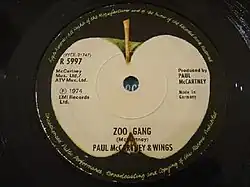 It was recorded on 25 April 1973[1] and was released on 28 June 1974 as the B-side of the "Band on the Run" single in the United Kingdom. "Zoo Gang" was the theme song to the short-lived television programme The Zoo Gang. In 1993, "Zoo Gang" was included as a bonus track on the re-issue of the album Venus and Mars on compact disc as part of The Paul McCartney Collection.[2] It was the song's first appearance on an album. It was later released on most editions of the 2010 re-release of Band on the Run.