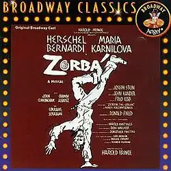 Zorba is a musical with a book by Joseph Stein, lyrics by Fred Ebb, and music by John Kander. Adapted from the 1946 novel Zorba the Greek by Nikos Kazantzakis and the subsequent 1964 film of the same name, it focuses on the friendship that evolves between Zorba and Nikos, a young American who has inherited an abandoned mine on Crete, and their romantic relationships with a French woman and a local widow, respectively.