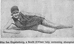 Zus Engelenberg (4 January 1909 – 16 May 1984) was a South African swimmer. She competed in the women's 100 metre freestyle event at the 1928 Summer Olympics.[1]