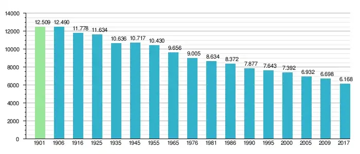 - Wykres liczby ludności Ærø na przestrzeni ostatniego stulecia