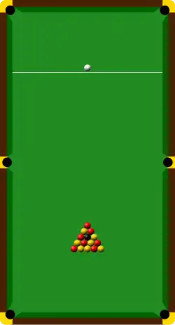 - faulu, który kończy się snookerem (gracz wybiera między grą z zastanego miejsca, z wolną bilą lub z białą "w ręce" z pola bazy).