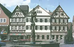 Budynek dawnego szpitala (XIII–XVIII w.) zbudowany z kamienia oraz drewna (górna kondygnacja) ma charakter obronny, zachowała się jedna z baszt. Z budynków o konstrukcji szkieletowej wyróżniają się także zabudowania ulicy Marktstraße, stojący nieopodal budynek apteki z XVII w. oraz tzw. Żółty Dom (Gelbes Schlössle) z XVIII w.