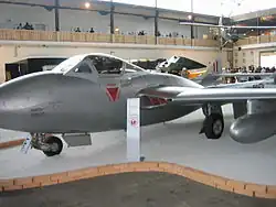 | De Havilland DH.115 Vampire Trainer[2] | T.11 (4 egz.), T.55 (5 egz.)[30] | 9 | 1957–1972 | Zastąpione przez samoloty Saab 105[30]. | ||
